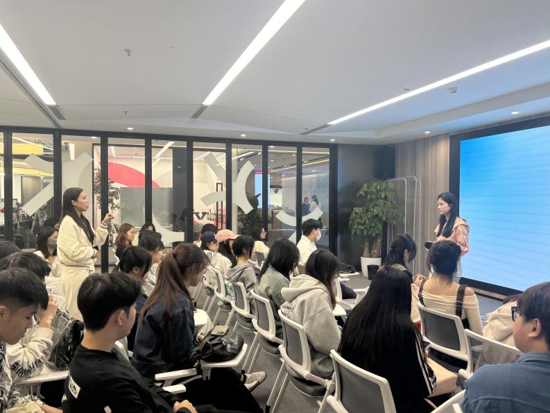 随后,师生走进深圳市青年力量传播有限公司。该公司专注青年话题与社会议题传播,展示多个短视频与纪实传播项目案例。学生们也积极与导师展开讨论,现场气氛热烈。导师指出:“新一代新闻人要学会用年轻的方式表达严肃主题,用真诚赢得受众。”