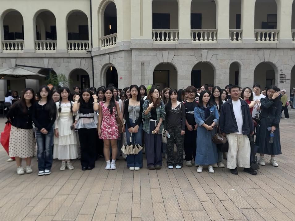 下午,师生们来到位于中环的大馆(前维多利亚监狱旧址)参观学习。作为香港极具代表性的历史建筑群之一,大馆在城市发展的浪潮中完成了从殖民监狱到文化艺术地标的蜕变,展现了城市记忆与当代创意的交织。学生们自由穿行于石墙长廊与现代展厅之间,在古迹与艺术装置的碰撞中,体会到“空间也能讲故事”的独特魅力。这种自主探究的学习方式,让学生在感受城市文化脉动的同时,培养了跨学科的观察力与叙事思维,为未来从事文化传播、品牌策划与社会创新项目积累了宝贵的灵感与经验。
