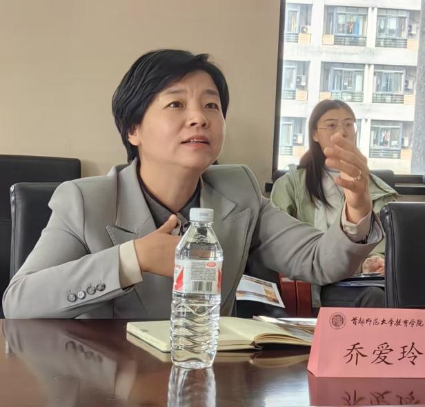 随后,首都师范大学教育学院副院长乔爱玲教授介绍了首都师范大学教育学院的基本情况,并着重强调了评估工作中应注意的关键方面。乔爱玲教授从评估指标体系、评估流程、数据收集与分析等多个角度进行深入解读,为华商学院教师教育学院的评估工作提供宝贵的经验和思路。