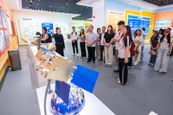 展馆解说员以“澳门科学一号”卫星为切入点,向研学团队系统介绍了澳门特别行政区与中国内地联合研发的重大成果。她表示,作为粤港澳大湾区科技协同创新的标志性项目,“澳门科学一号”卫星由国家航天局和澳门特别行政区政府联合研制,澳门科技大学月球与行星科学国家重点实验室组织实施,开辟了内地与澳门在航天等创新科技领域开展合作的新路径,拓展了以内地为基础、澳门为窗口开展空间科学、空间技术、空间应用广泛合作交流的新空间,为粤港澳大湾区区域发展和航天高质量发展增添了新动能,生动展现了“一国两制”制度优势下区域协同创新的强大生命力。