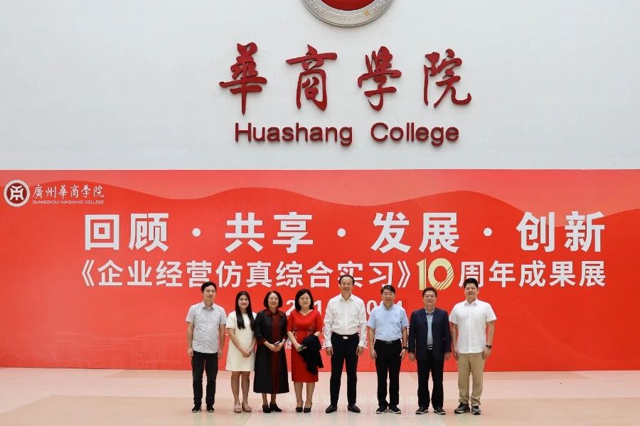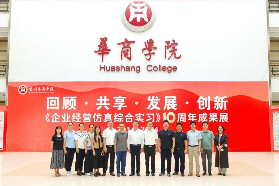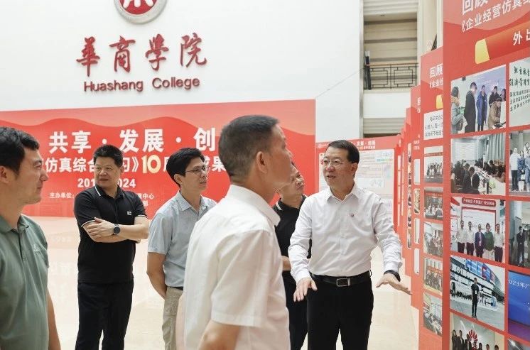 华商教育集团董事长廖榕就,学校总督学,党委书记陈玉欢,副校长刘少波、吕峻闽,学校顾问郭银华,广东财经大学国家级实验教学中心主任姚维保,副主任李立君,教学部部长陈韦伶,广东白云学院经管中心主任贺雪荣,伟德体育会计学院、管理学院、人工智能学院等院系领导及师生,共同参观了《企业经营仿真综合实习》课程10周年成果展,见证了课程发展建设的阶段性“成绩单”。