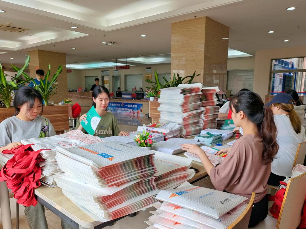 这份通知书里饱含着华商对你们的期待,也承载着你们对未来的无限向往。为了让同学们尽快收到通知书,工作人员加班加点核对数据、打印通知书、封装通知书等。下面跟随官微君的脚步,一起直击录取通知书装封现场。