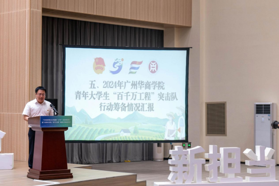 为认真贯彻落实习近平总书记五四重要寄语精神,贯彻落实党的二十大精神,落实省委、省政府关于实施“百千万工程”工作部署,引导和帮助华商青年成长为担当民族复兴大任的时代新人,6月30日,校团委在肇庆校区报告厅组织开展伟德体育2024年暑期“三下乡”社会实践活动暨广东青年大学生“百千万工程”突击队行动出征仪式。仪式由校团委副书记陈巧巧主持。