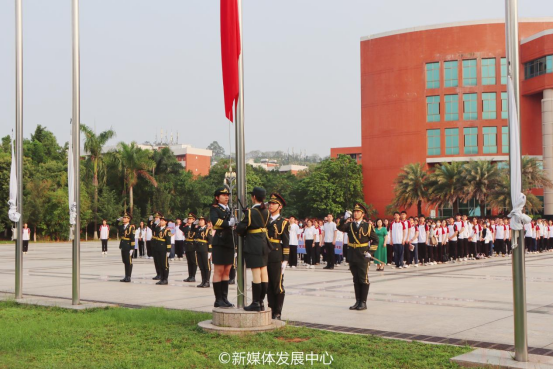 ——主题升旗仪式。4月15日上午7:40,学校团委在双校区组织开展2024年“全民国家安全教育日”主题升旗仪式。学校党委书记陈玉欢、副校长王卫平、肇庆校区党委书记苏宁、校团委书记陈刚、校团委兼职副书记朱宁宁、校团委常委杨李军、校团委专职团干、各二级学院团学骨干、学生会骨干、校级学生组织学生代表、学生社团学生代表以及青马班、大骨班学生代表,近2000名师生代表参加本次升旗仪式。