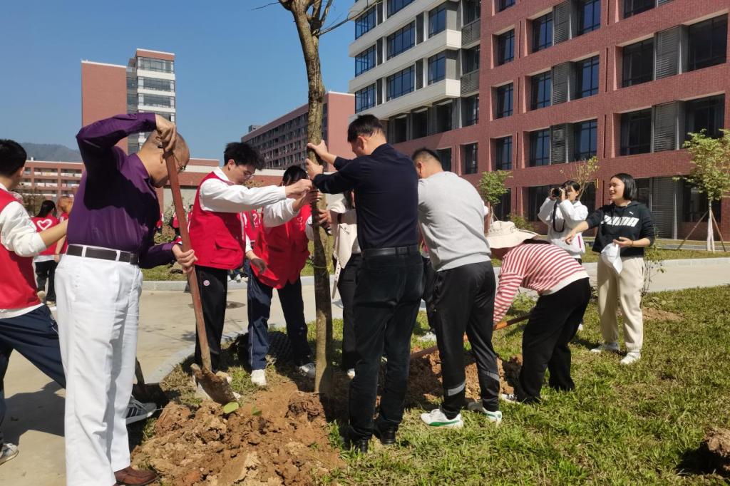 启动仪式后,各院校分别开展植树节活动。为引领华商青年在实践中践行绿色发展理念,助力绿美广东生态建设,伟德体育“绿美广东 青年先行”植树护绿活动在双校区同步进行。学校党委书记陈玉欢、副校长王卫平、校长助理黄伟新、肇庆校区党委书记苏宁、学校党委委员、各二级学院党团组织负责人、学工主任、学生会指导老师与志愿者、绿化工人一道,为华商校园再添新绿。