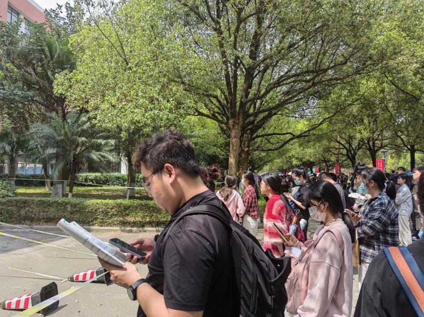 在校园的主干道上,紧邻考试场地的外围,你们依然分秒必争,为了即将到来的考试做更充分的准备,为了给自己增添更多的信心。你们每一次微小的进步,都是你们向考场迈进时坚实的底气,都是对你们追逐梦想的无声鼓励。愿你们怀揣着落笔如有神的底气,勇敢奔赴梦想的征程。