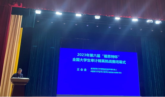 11月18日,第六届“福思特杯”全国大学生审计精英挑战赛决赛在美丽的南京审计大学举办。中国审计学会会长孙宝厚、中国高等教育学会副秘书长吴英策、教育部审计学课程群虚拟教研室负责人王会金、南京审计大学副校长陈骏等领导出席开幕式并致辞。南京审计大学政府审计学院院长王士红教授主持开幕式,广州福思特科技有限公司总经理杨帆等专家学者,以及来自全国100多所高校的决赛师生参加了这场盛大活动。