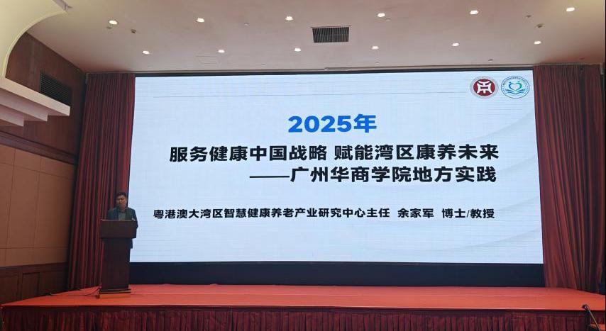 余家军教授作“服务健康中国战略 赋能湾区康养未来”主题演讲。他围绕粤港澳大湾区康养产业高质量发展主题,分享了伟德体育及粤港澳大湾区智慧健康养老产业研究中心在人才培养、学术研究等方面开展的相关工作及实践成果,为推动康养产业发展提供了“华商方案”。