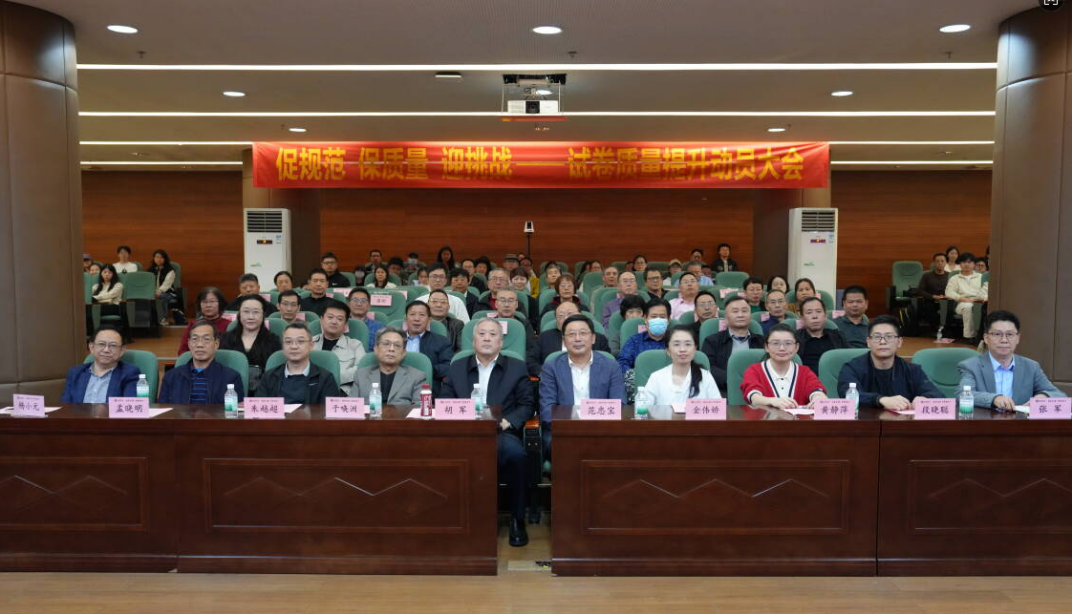 教务处处长金伟娇作专题报告,围绕“形势与问题”“体系与标准”“行动与号召”三个维度展开阐述。她提到,试卷质量直接反映教学大纲执行力、命题科学性和教学反思深度,是合格评估的核心观测点,明确命题双向细目表设计、题型多样化搭配、平时成绩过程管理、参考答案与评分标准制定、试卷评阅规范等关键环节的具体要求,并对校院两级动员培训、节点式管理、专项检查等后续工作进行部署。