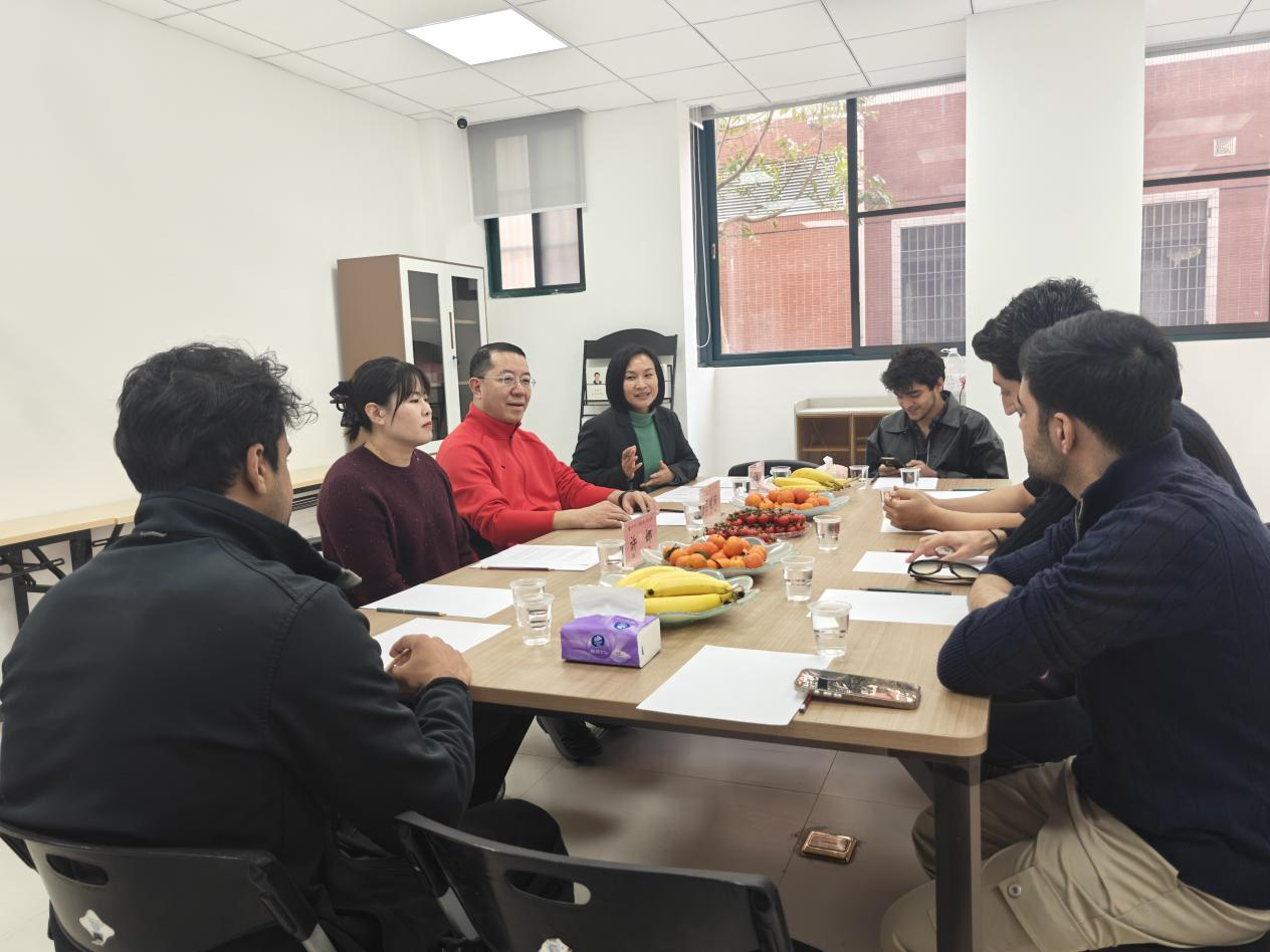 座谈现场,校领导与留学生们围坐一堂,像家人般拉起了家常。“在校园生活还习惯吗?”“有什么需要我们协助的?”“春节打算怎么过?”一句句关切的询问,一次次耐心的倾听,让留学生们敞开心扉,畅谈在华求学的点滴感悟。他们分享着在课堂上的收获、校园里的趣事,也坦诚交流了生活中遇到的小困惑。后勤保卫处杨燕平处长认真记录下大家的需求与建议,现场畅通常态化沟通联系渠道,用贴心为他们的校园生活做好后盾。