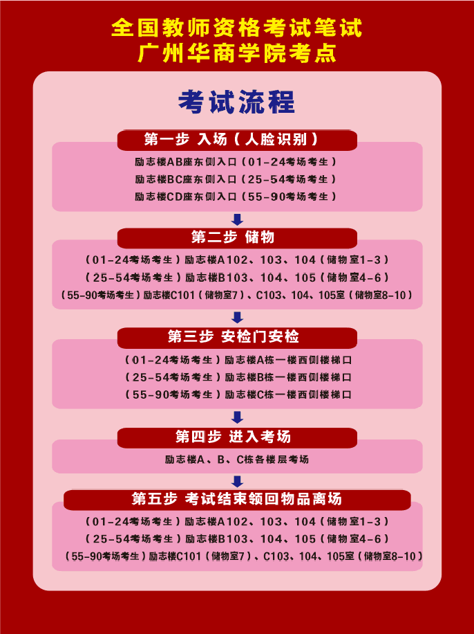 考试要求考生人脸识别后,将个人物品(除证件与必要文具外)进行存储,并通过安检门安检,为此,请各位考生仅携带必要的考试文具进入考场,以免影响储物与安检的进度,延迟进场时间。考试同时规定,有作弊情形的将依据《教师资格条例》的相关规定3年内禁止参加教师资格考试,请各位考生注意考风考纪,遵守考场纪律,诚信应考。