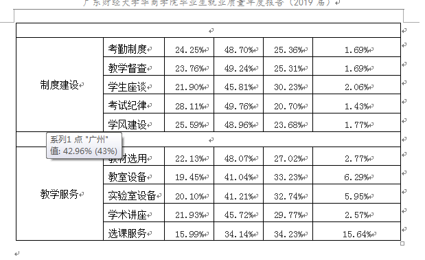 为了解我校毕业生对我校教学管理的满意度,我校采用自编的调查问卷,对2019届的本科毕业生进行调查。以分层随机抽样的方式,从参加就业的6108个毕业生中选取3497人作为调查对象。样本的分布涵盖我校2019届9个院系25个专业的毕业生, 能较全面地反映毕业生对我校教学的评价。
