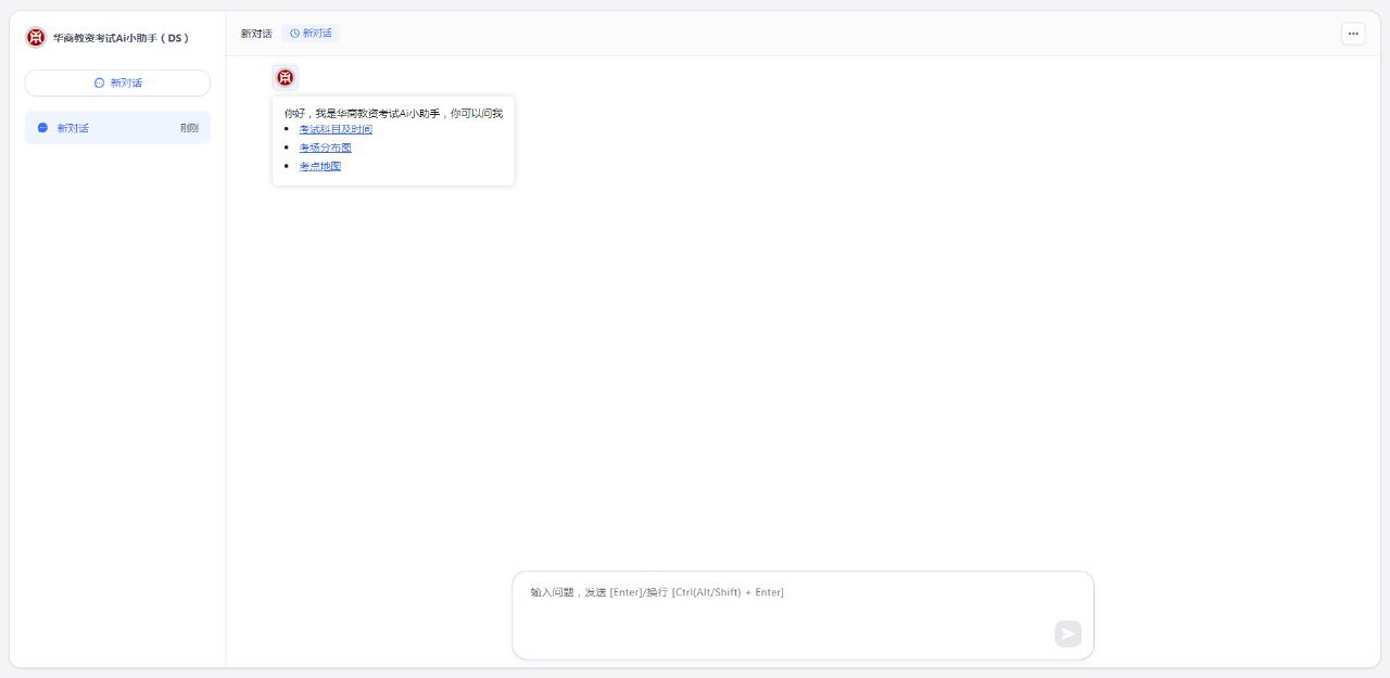考生可通过华商AI智能体“华商教资考试AI小助手”(点击阅读原文可体验),搜索考场科目、考试时间、考场分布图等信息。华商AI智能体通过数字化手段构建考试保障体系,使考生得以系统掌握考点信息,为考生从容应试提供全方位技术支持。
