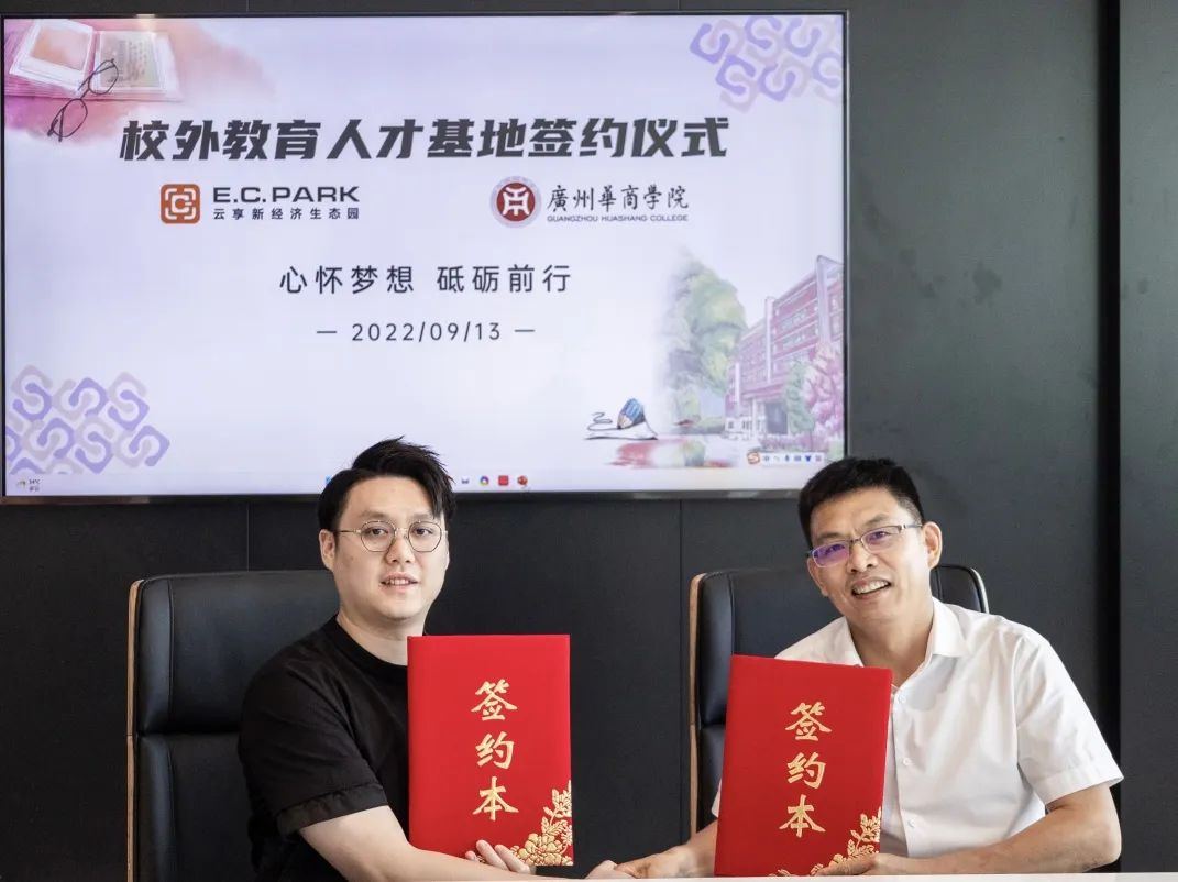 深化产教融合改革,共谋校企合作新篇。为促进教育链、人才链与产业链、创新链的相辅相成,推动我校校企合作、产教融合再度开花结果,与企业深入交流合作,促进华商学子技能提升、稳岗就业。9月13日上午,伟德体育副校长张捷率队,与经济贸易学院院长李广明,管理学院院长李招忠,校长助理、创新创业学院常务副院长余家军及相关工作人员一行前往广州云端共享实业有限公司云享新经济生态园(下称:E.C.Park)举行校企战略合作签约仪式暨教学实践基地挂牌仪式,共同开展产教融合项目合作及“校外教学实践基地”建设。