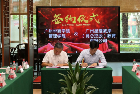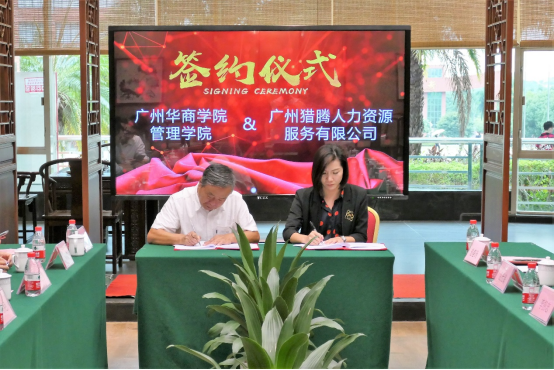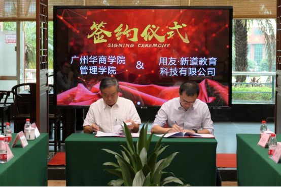 参加签约仪式的有:副校长张捷教授、管理学院院长李招忠教授、副院长秦陇一教授、院长助理袁仕海副教授、校产教融合办主任唐显锋主任、产教融合专员曾惠玲老师、创业创新秘书杨惠茜老师以及四家签约企业的代表。四家企业的代表分别是:用友•新道科技股份有限公司及总经理黄堪敬一行、广州猎腾人力资源服务有限公司刘艳总经理一行、深圳孵创兴华专利代理有限公司总经理林光明一行、广州星耀彼岸(昆仑控股)教育有限公司华南区总监肖训智一行。