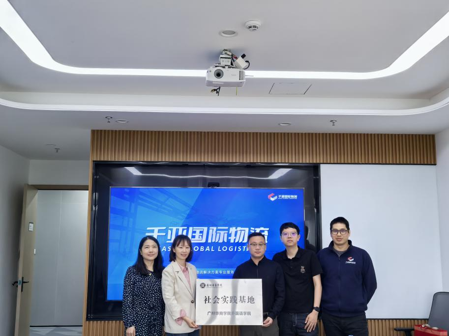 2025年3月27日下午,外国语学院与千亚国际物流货运代理有限公司在千亚深圳分公司举行共建实习基地挂牌仪式。千亚国际物流深圳分公司经理王兴华、人力资源总监房翠,外国语学院党委甄玲书记、熊梅老师、宾娟老师、蒋宇君老师、肖茜老师出席了此次活动,双方携手开启校企合作的新篇章。