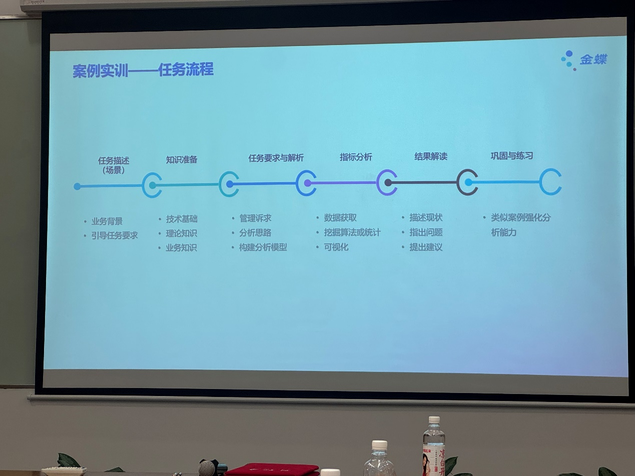 郑菁副总监和曾欣老师详细展示了金蝶教学产品。他们表示,金蝶可依据数字经济专业的培养目标,量身定制虚拟仿真等课程。这些课程将通过模拟真实商业环境,让学生在实践中锻炼跨专业融合运营能力,帮助学生更好地将课堂所学理论知识应用于实际业务场景,为未来职业发展积累经验。