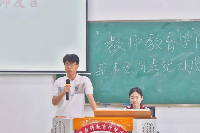 为强化考风管理,严肃考试纪律,教师教育学院于2025年6月10日在6号楼205教室召开期末考风考纪动员大会,筑牢诚信考试防线。学院辅导员曾锦鸿、赖智凯、李奕燕、叶志锋及各班级、学生组织代表参会。