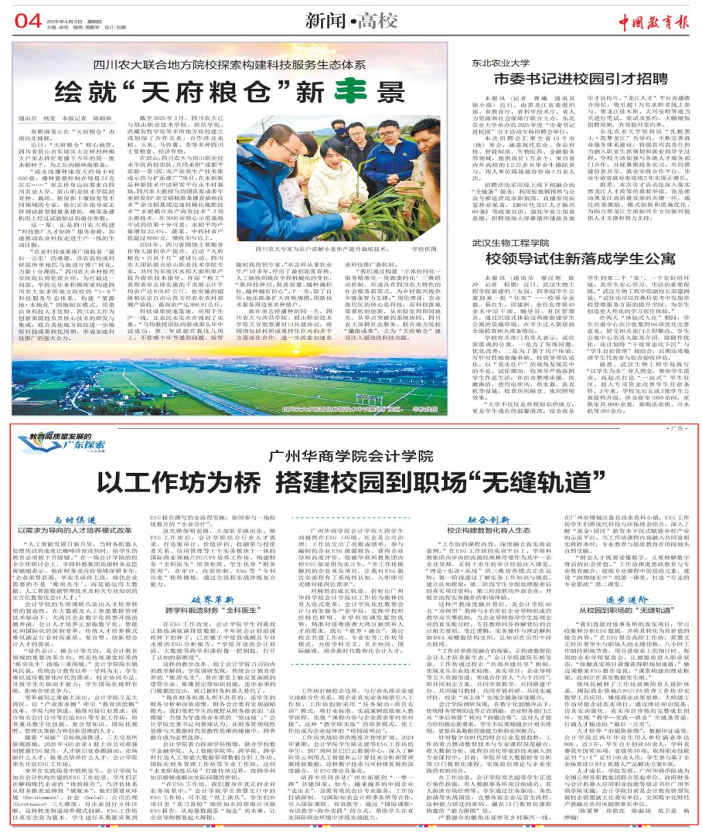 近日,伟德体育会计学院以工作坊为载体的产教融合育人模式获《中国教育报》专题报道,成为全国高校数智化会计人才培养的标杆案例之一。