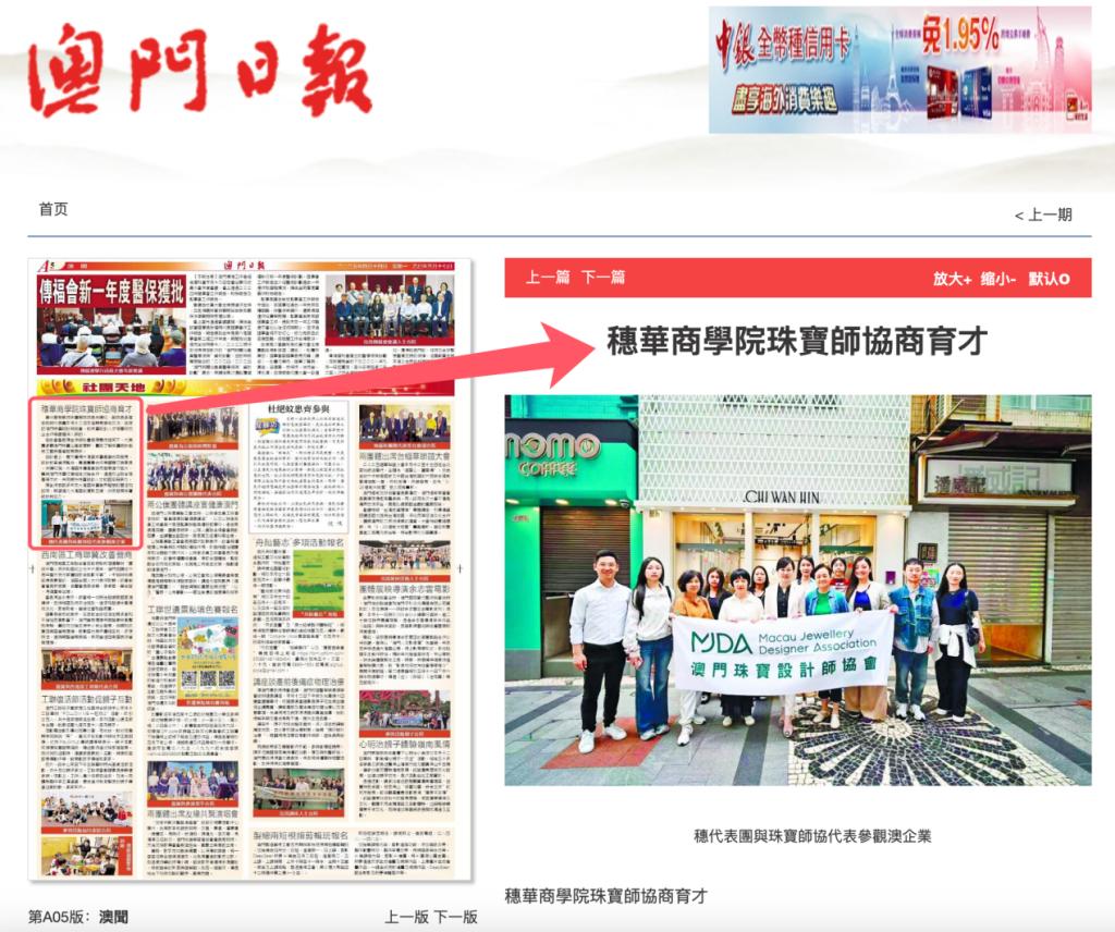 (伟德体育珠宝学院教师交流团与澳门珠宝设计协会的交流活动被《澳门日报》报道)
