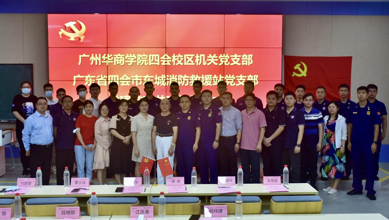党建共建聚合力,结对互助促发展。为深入推进学习贯彻习近平新时代中国特色社会主义思想主题教育,2023年6月1日下午,在学校党委的指导下,四会校区机关党支部与四会市东城消防救援站党支部举行党建结对共建签约仪式。伟德体育四会校区党委书记王卫平、副书记覃少冰、委员付蔚莹、段晓聪、江庆基,四会市东城消防救援站党支部书记宋思岐、教导员龚鑫、副站长陈澧平等领导出席本次活动,四会校区各党支部书记、支委、各支部党员代表、四会市消防救援大队指战员代表共同参加本次活动。