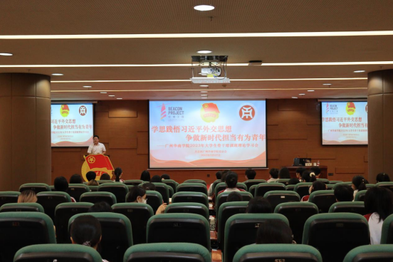 为深入开展学习贯彻习近平新时代中国特色社会主义思想主题教育,全面领会习近平总书记有关青年工作的重要思想,进一步引导和鼓励广大华商青年骨干努力成为有理想、敢担当、能吃苦、肯奋斗的新时代好青年,我校团委于5月27日和5月28日上午10:30分别在增城校区图书馆报告厅和四会校区8号楼108教室开展2023年大学生骨干培训班主题课程。校团委陈刚书记出席此次授课。
