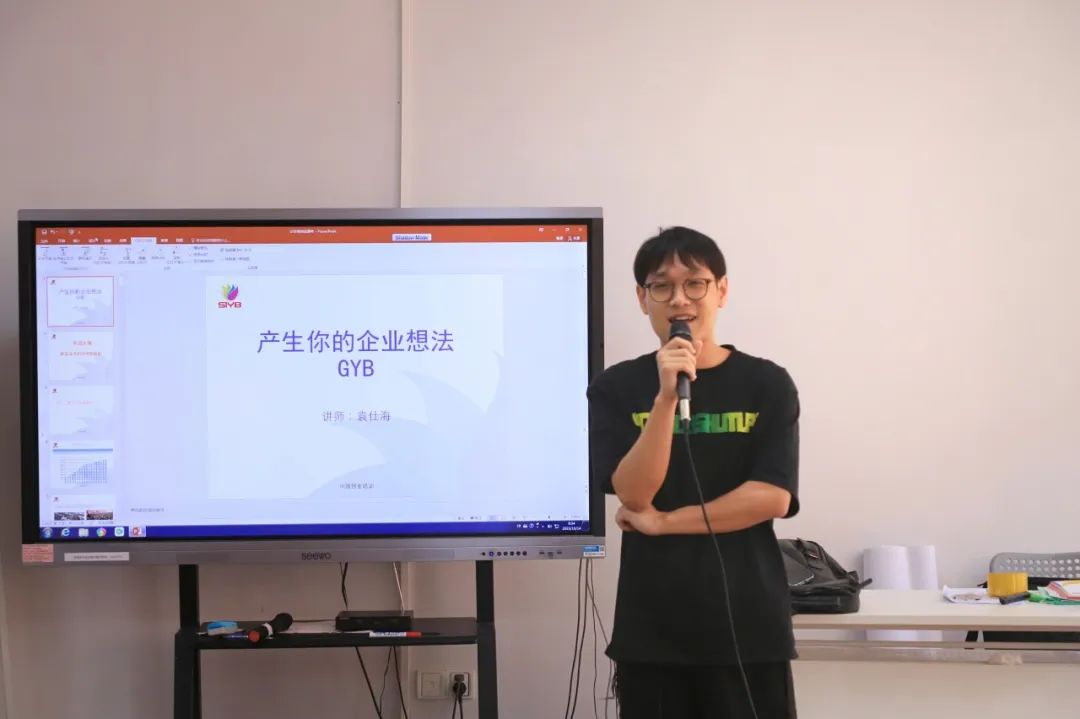 袁仕海老师作为授课教师代表在开班仪式上致辞,对参加本期GYB创业培训班的同学们表示热烈欢迎。他表示,在当今社会变革迅速、竞争激烈的时代,创业即将面临挑战,但挑战也意味着机遇。这就需要创业者具备勇气、决心和韧性的素质,一直保持积极乐观的态度,坚信自身能力,在实践过程中提升创业思维,提高团队协作与商业洞察的能力。而这份素质和能力的培养,正是GYB创业培训班的目的。他指出,GYB创业培训课程作为学校重要的创业培训项目,旨在培养学生的创新思维、创业精神和实践能力。学员们在学习过程中应积极与来自不同背景和专业领域的同学交流与合作,珍惜这次这份来之不易的机会,广泛结交朋友,拓展自己的人脉资源。袁仕海老师希望每位参加GYB的学员都能在这个过程中获得丰富的经验,不断发掘自己的潜力,并为未来的创业之路奠定坚实的基础。