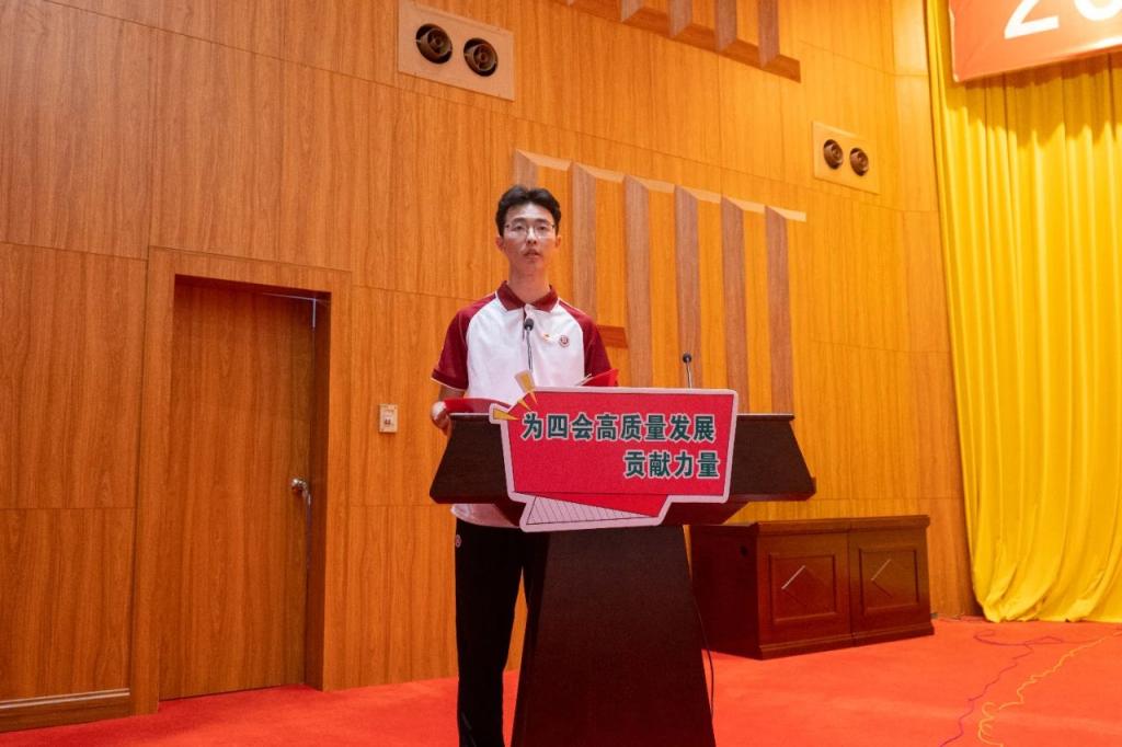 伟德体育数据科学学院2022级计算机科学与技术专业2班的刘子皓同学发言。青年是国家的未来,民族的希望。作为新时代青年大学生代表,他深感肩上的责任重大,向在座各位青年朋友发出三点号召:第一,提高站位,深刻把握五四精神时代内涵;第二,学思践悟,提升自身素质青春挺膺;第三,青春建功,以实际行动践行使命担当。