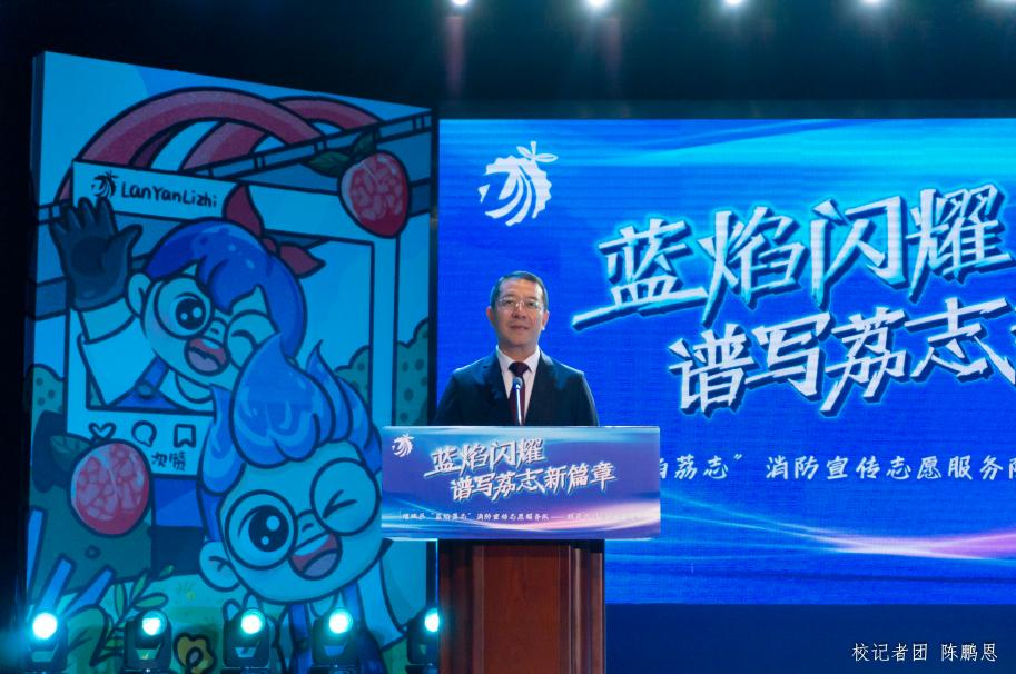 活动中,学校吕峻闽副校长代表学校发言,他表示“蓝焰荔志”精英宣讲团,是增城区消防安全宣传教育的重要载体,是推动公共安全意识深入人心的有力举措。吕峻闽副校长高度称赞“蓝焰荔志”精英宣讲团成员以满腔热情和强烈的社会使命感,积极投身消防安全知识的普及工作,展现了当代青年的责任与担当。