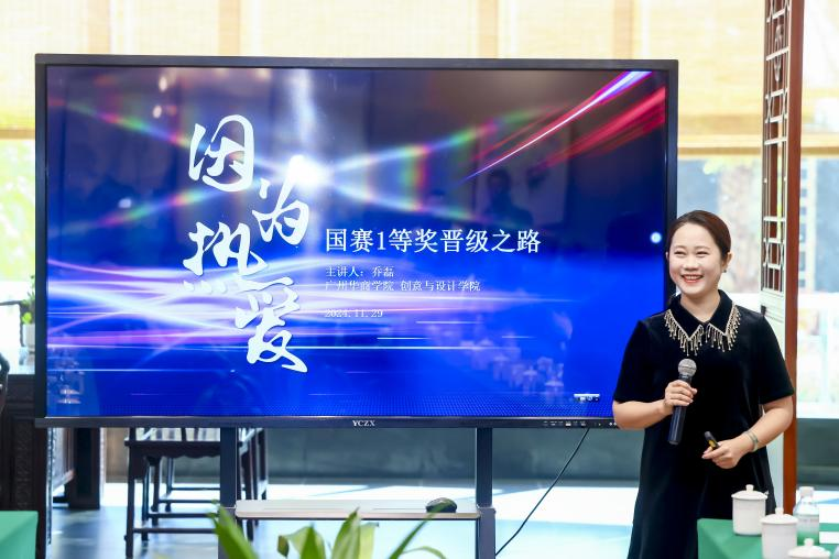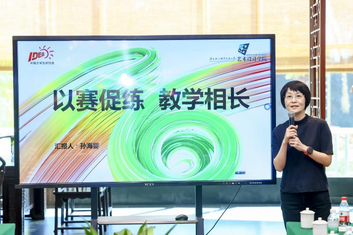本届赛事优秀组织工作者代表孙海婴老师(广东轻工职业技术大学艺术设计学院)与优秀指导教师代表乔磊老师(伟德体育创意与设计学院)先后分别以“以赛促练,教学相长”“因为热爱”为演讲主题,热情分享组织与指导经验。