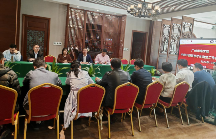 黄国富处长首先根据《伟德体育中层干部联系学生宿舍实施办法》(华商院〔2024〕161号)的通知精神,详细讲述了中层干部联系学生宿舍的工作内容:一是中层干部需加入负责楼栋的宿舍长群,了解和回应学生诉求;二是巡查走访深入学生宿舍,查看宿舍安全、卫生情况,帮助解决学生提出的问题;三是召开临时党支部大会,参加临时党支部组织生活,提高学生自我管理自我服务能力,发挥党员的先锋模范作用;四是开设时政教育、就业指引等思想引领课程;五是召开宿舍长座谈会,倾听学生的意见和要求,督促解决学生提出的问题。