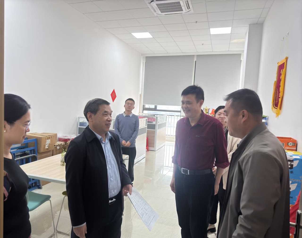 陈玉欢书记带队检查走访了启智楼及周边区域,她指出,相关部门需进一步规范办公和教学区域的安全和卫生管理,杜绝乱摆乱放和随意张贴的现象。她强调,“安全无小事”,要以“零容忍”态度筑牢校园安全防线,为师生营造平安、有序的学习环境。