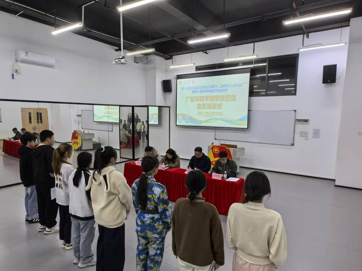 校长助理覃少冰,校团委书记陈刚,中国模特行业协会会员、广东省模特行业协会理事梅静,广州启德文化发展有限公司陈迎老师,肇庆校区学工办古文胜科长,四会市残疾人联合会组织宣传文体部一级科员何弘,四会中学团委书记孙喜真,校团委副书记陈巧巧,校团委专职团干、各二级学院团学骨干、行政职能相关同志参加本次面试工作。