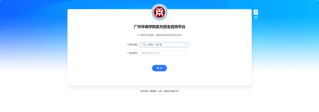 方式二:伟德体育招生信息网登录伟德体育招生信息网(网址:https://zs.gdhsc.edu.cn/),点击右侧“智能机器人小招”,在登录界面完善基础信息后即可在线咨询或留言。