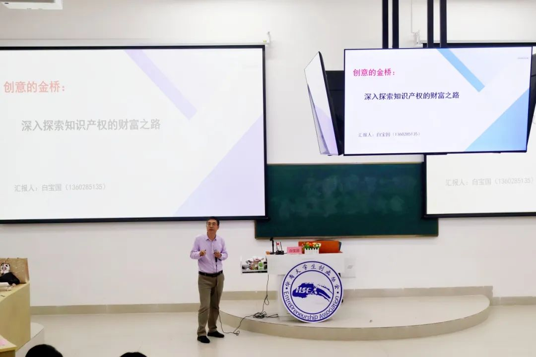 白宝国先生紧密结合《民法典》以及国际知识产权体系,从法律维度对知识产权展开了系统讲解。他通过对比分析、案例解读等方式,详细阐述了专利权、商标权、著作权的内涵,保护范畴,实践要点以及三者之间的差异,为学生保护创新成果提供了重要的理论支持和实践指引。