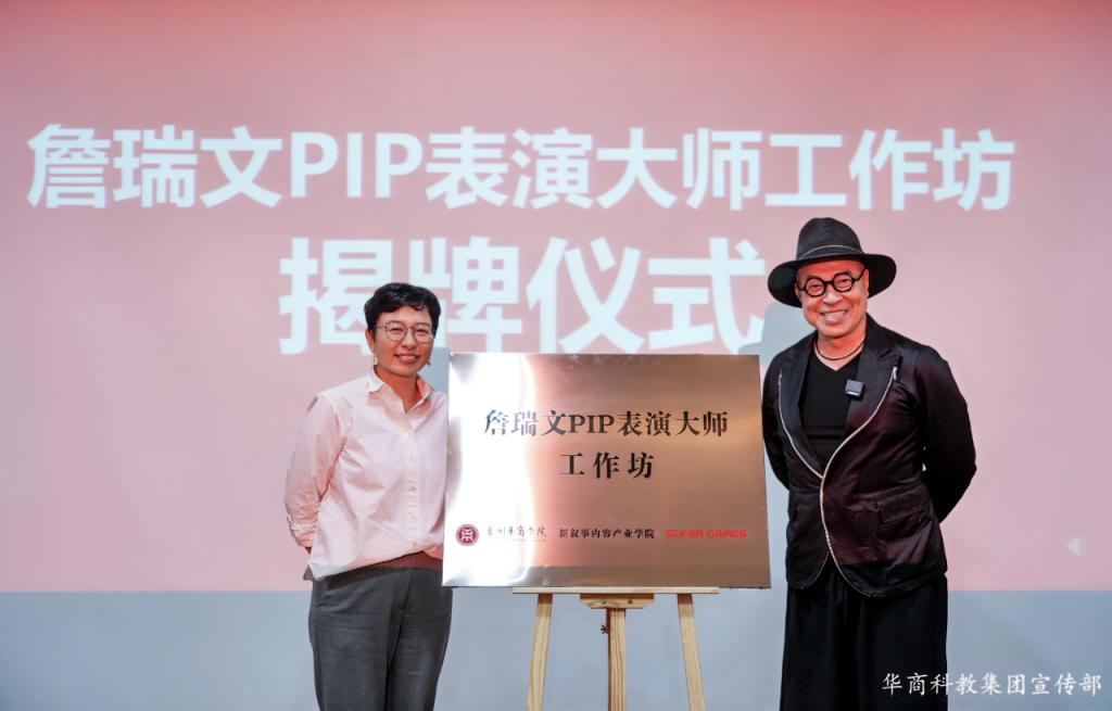 文学院副院长、新叙事内容产业学院徐桃院长致辞。她表示,文学院一直积极探索文学与产业融合及跨界合作。新叙事内容产业学院旨在搭建融通平台,推动学科与产业发展结合,创造新教育模式助力学校应用转型。她指出,此次学院邀请到詹瑞文大师加入团队,期望通过文学与戏剧碰撞,探索“玩中学”新路径,助力学院在人才培养、产业对接等方面实现新突破,提升学院在推动文化产业发展、培养创新型人才上的价值,为行业发展贡献更多力量。