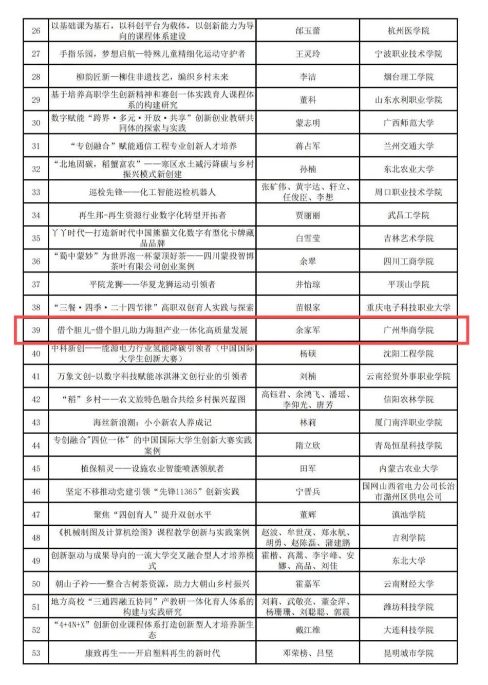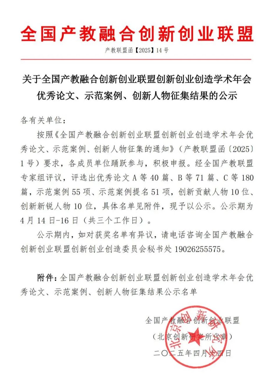 2025年4月14日,按照《全国产教融合创新创业联盟创新创业创造学术年会优秀论文、示范案例、创新人物征集的通知》(产教联盟函〔2025〕1号)文件通知,经全国产教联盟专家组评议,伟德体育“借个胆儿——借个胆儿助力海胆产业一体化高质量发展”案例获评全国产教融合创新创业联盟创新创业创造学术年会示范案例,余家军教授获评全国产教融合创新创业联盟创新创业创造学术年会“创新新锐人物”。