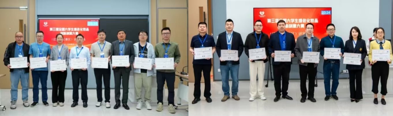 上午,第三届全国大学生绿色化妆品创新创意大赛泛大湾区初赛、决赛在学校弘美楼举行。赛事分为学术研究组、视觉设计组、创新创意组、配方设计组及原料创新组,参赛的115支团队分别在各个赛道中进行现场答辩,由专业评审专家进行打分。参赛作品展现出丰富的创意与专业实力。从天然原料的创新应用、绿色包装的突破设计,到功效成分的科学验证、可持续生产工艺的优化探索,无一不体现着“科技向善、美有担当”的理念。
