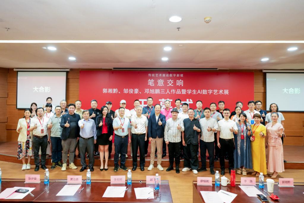 传统艺术+数字艺术=“破壁”之旅!我校举办“笔意交响–郭湘黔、邹俊豪、邓旭鹏三人作品暨学生AI数字艺术展”