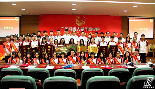 大会在嘹亮的国歌奏唱中拉开序幕。学院团委常委黄秋铭宣读了《共青团广东省委员会关于表彰2014-2015年度广东共青团优秀个人和集体的决定》(团粤发〔2015〕8号)、《共青团广东省委员会、广东省学生联合会关于表彰2014-2015年度广东省优秀学生会、广东省优秀学生社团、广东省优秀学生干部的决定》(团粤联发﹝2015﹞34号)、《共青团广东财经财经大学华商学院委员会关于表彰我院2014年度共青团工作先进集体和优秀个人的决定》等省市及学院团委的表彰决定。