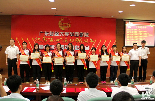 2015年5月11日下午,广东财经大学华商学院纪念“五四”运动96周年暨建团93周年表彰大会在中央图书馆报告厅隆重举行。学院党委书记苏宁,学院党委委员、团委书记杨宪以及团委常委、团委委员、学生组织(社团)指导老师、各校级学生组织正部长以上干部、各院系团总支副书记、学生分会正副主席、学生社团负责人、各院系团支书代表、团员代表、学生代表以及获奖人员代表共230余人出席大会。大会由学院团委副书记刘苗主持。