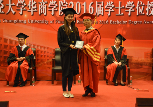 6月24日上午,我院2016届学士学位授予仪式分别在图书馆报告厅、国际会议中心报告厅和启智楼一楼三个会场举行。董事长廖榕就,广东财经大学副校长于海峰、王廷惠,华商学院院长陈玉川,副院长王列耀分别为600名毕业生代表颁发学位证书。