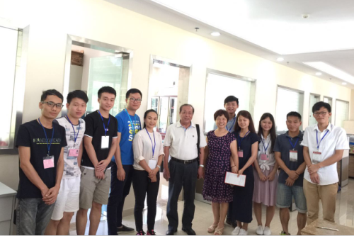 | 董事长廖榕就博士在录取现场与部分招生工作人员合影 |