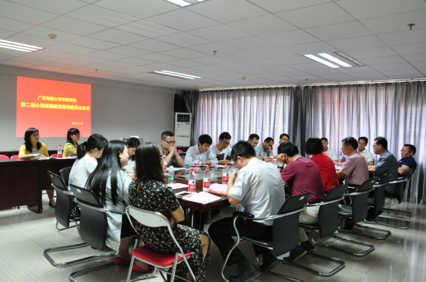 会议第一项,委员会主任王锦秀副院长宣读三份文件:《广东财经大学华商学院关于成立大学生心理健康教育工作领导小组的通知》、《广东财经大学华商学院关于调整心理健康教育指导委员会的通知》、《广东财经大学华商学院关于建立健全心理健康教育五级防护网络体系的通知》。