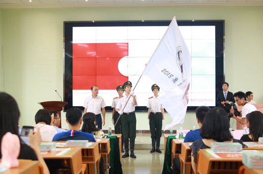 学院党委苏宁书记为学生代表授予“2018年暑期三下乡禁毒调研队”旗帜。伴随着授旗仪式的结束,全体人员起立,在领誓人带领下完成了禁毒宣誓仪式。
