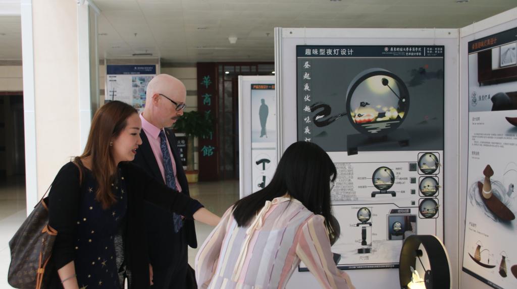 上午, Gauld教授参观了我校校史馆,了解我校的历史与规划。随后,他到中央图书馆参观本届艺术系毕业生的毕业作品展览,对学生奇思妙想的作品表示赞许。