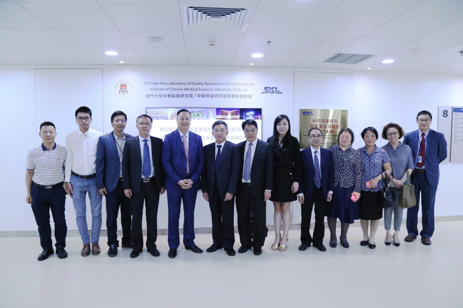 9月20日,华商教育集团廖榕就董事长、廖伊曼副董事长、广东财经大学华商学院陈新滋校长一行到澳门大学访问交流。在澳门大学中华医药研究院院长、中药质量研究国家重点实验室主任王一涛热情接待和陪同下,华商代表团参观了澳门大学以及澳门大学中药质量研究国家重点实验室。
