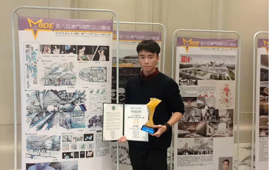 2019年12月13日,由澳门国际设计联合会主办的2019「金莲花杯」国际(澳门)大学生设计大赛在澳门美狮美高梅酒店举行隆重的颁奖典礼,我系17级环境设计专业林泽楷同学在环境设计专业陈小斗老师指导下荣获学生组室内空间类金奖。此奖项提升我校艺术设计系环境设计专业的国际知名度和影响力。