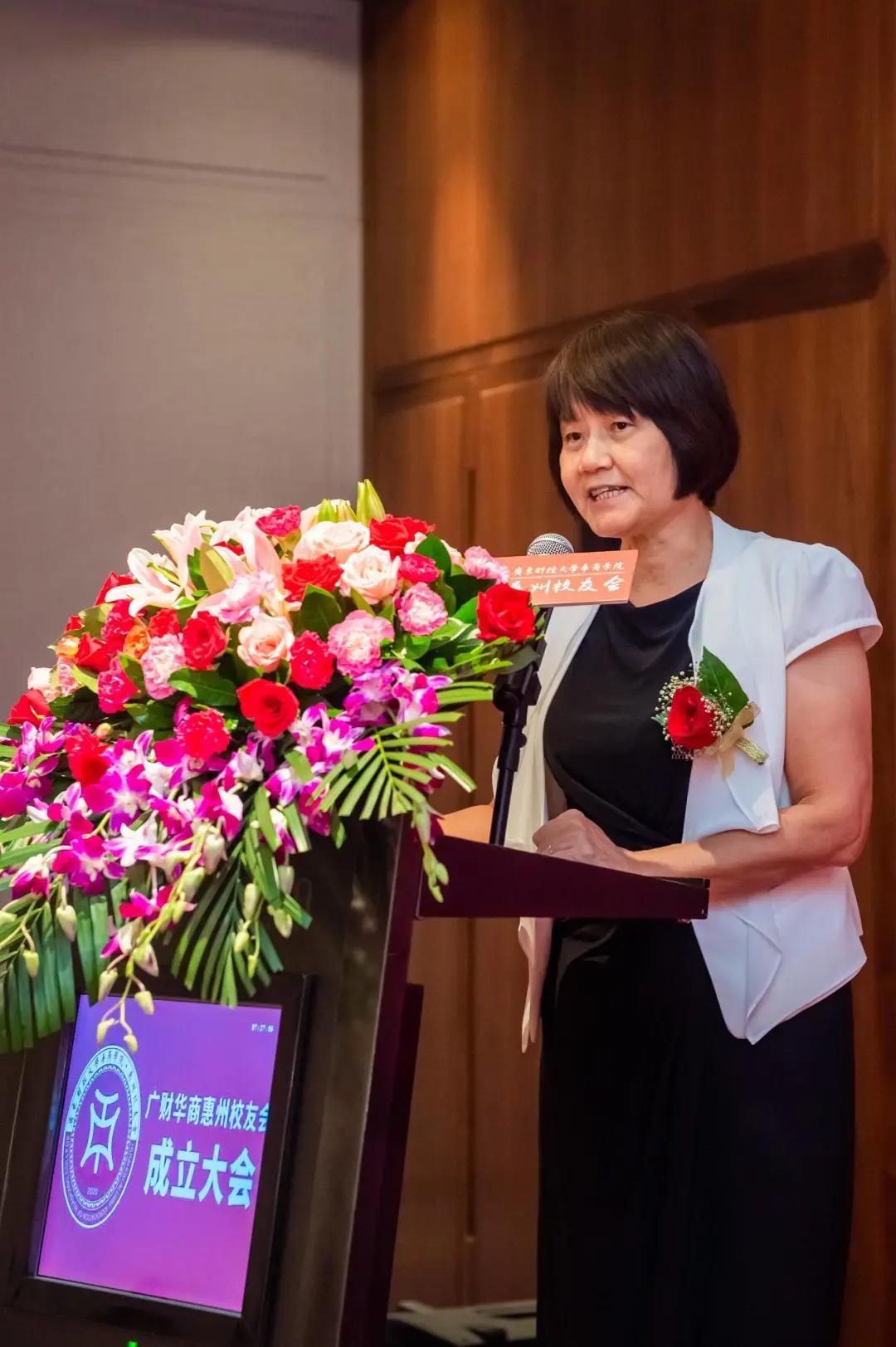 王锦秀副校长首先在成立大会上致辞,她转达了廖榕就董事长对惠州校友的关切之情和学校党政领导班子对成立大会的祝贺;赞扬了惠州校友会筹备组和广大热心校友的工作效率和工作热情,肯定了惠州市校友会将理事会定位为校友服务团队的工作思路;介绍了学校近年来在办学规模、学科建设、人才引进、科技创新等方面取得的成绩;同时指出:惠州校友会是校友们沟通交流的平台和感情枢纽,希望校友与校友之间、校友与母校之间能够互相关注、互相支持,共同发展。今年华商15周年华诞之际,学校将举行各项庆典活动,诚挚欢迎各位校友再回母校,再叙情谊。