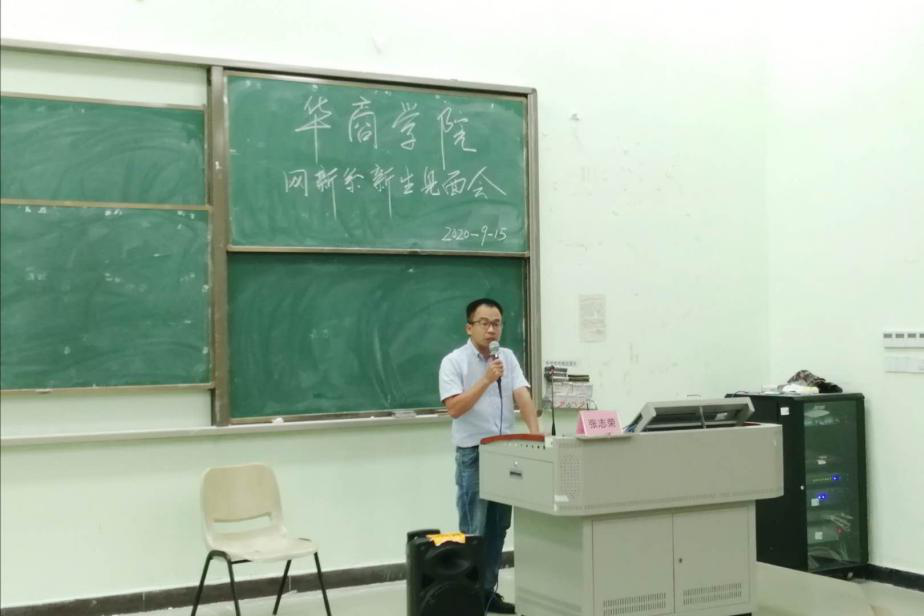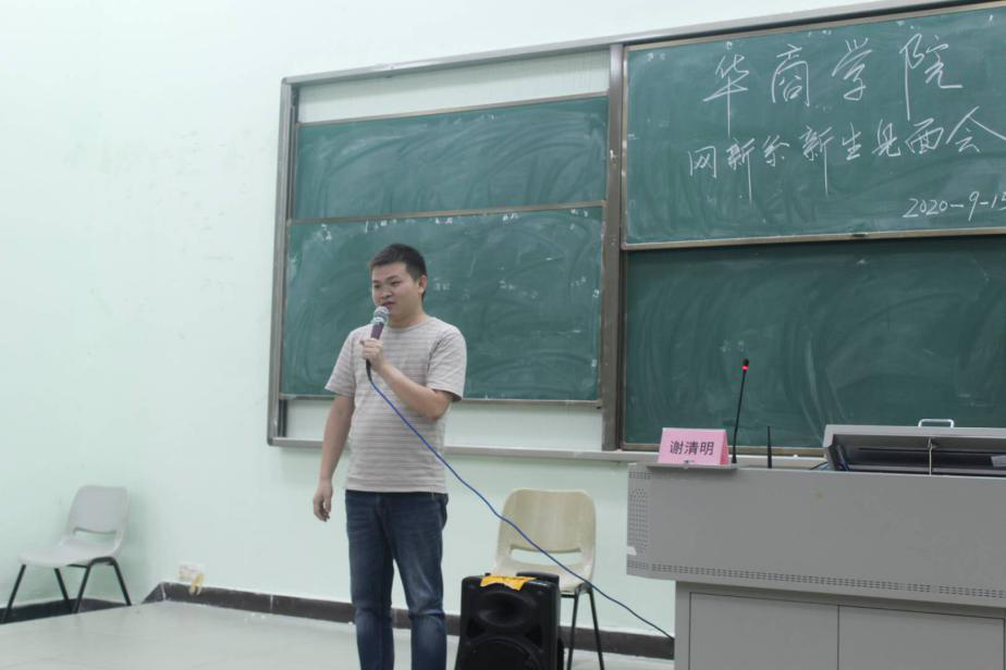 学生工作办公室主任谢清明老师代表学工队伍欢迎各位新生。在会议上,他简单讲解了学工部的老师组成以及工作任务。最后,他希望网新班的同学在接下来大学四年里支持学工部的各项工作。